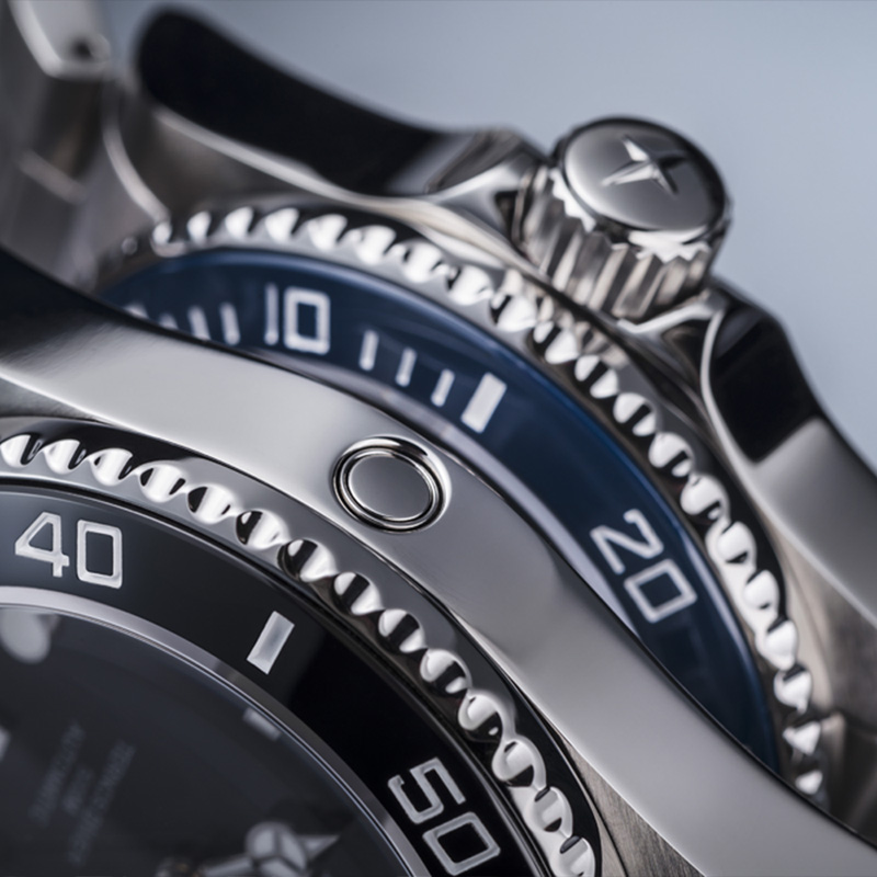 The most important criteria for divers’ watches include water resistance of at least 200 metres, a unidirectional rotating bezel for safe dive time regulation and excellent readability in the dark. Because ultimately, your life may depend on the functional capabilities of your wristwatch.