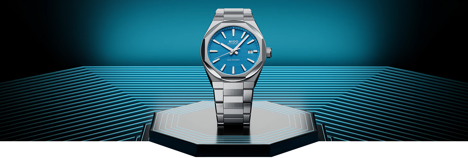 The Multifort codes, from MIDO’s oldest collection created in 1934, are clearly evident: the ultimate in robustness thanks to materials chosen for their excellence, such as stainless steel and Super-LumiNova®.