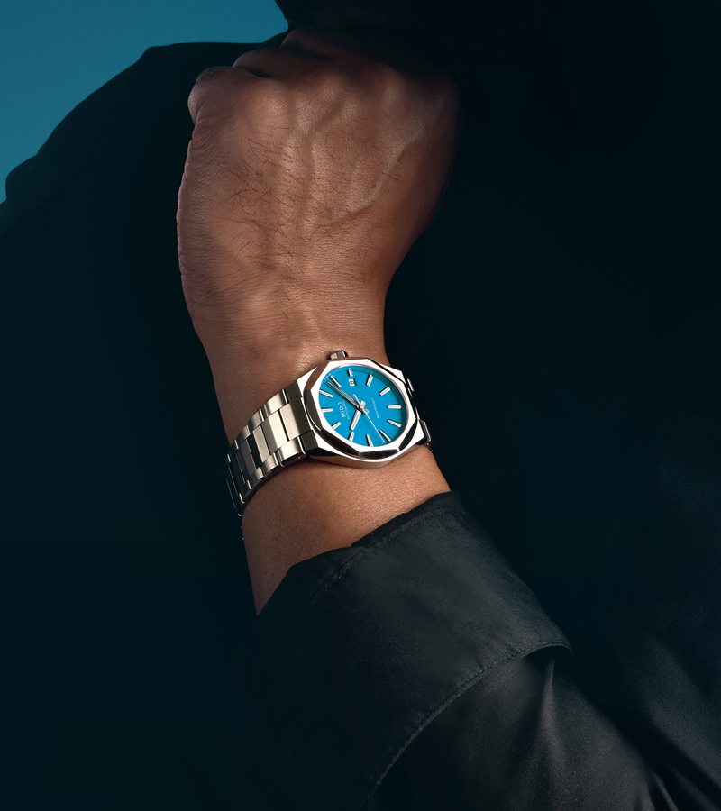 In an intense blue, the dial of the Multifort 8 One Crown is designed to excite. With its horizontal lines characteristic of this collection, it radiates infectious energy.