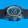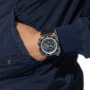 Case: 42 mm in width. Satin-finished and polished steel. Bi-directional rotating bezel with anodised black aluminium insert and 60-minute countdown scale.