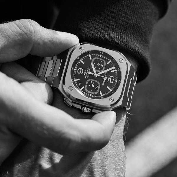 The BR 05, the new Bell & Ross icon, is now equipped with a chronograph movement, a mechanical complication perfectly adapted to the pace of urban life. Invented to measure and control short periods of time, this function is the best ally in quests that require mastering time.