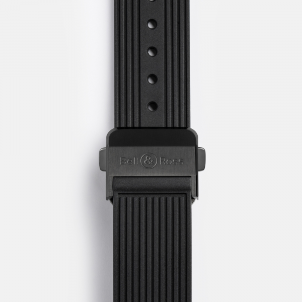 | BUCKLE | Deployant. Polished-satin steel treated with black PVD (Physical Vapor Deposition). |
