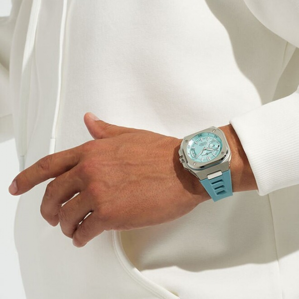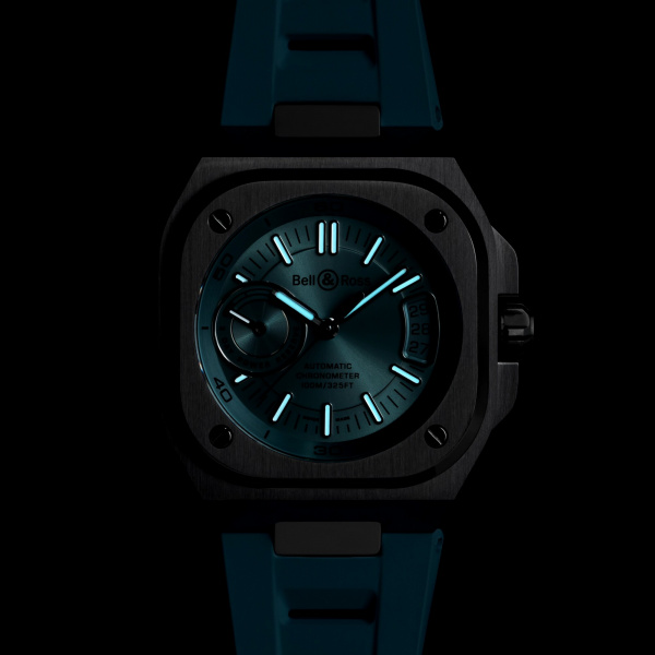 | Dial | Sunray ice blue. Applique indices filled with Super-LumiNova®. Metal skeletonised Super- LumiNova®-filled hour and minute hands. Black flange with 60-minute scale with white marking. |