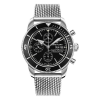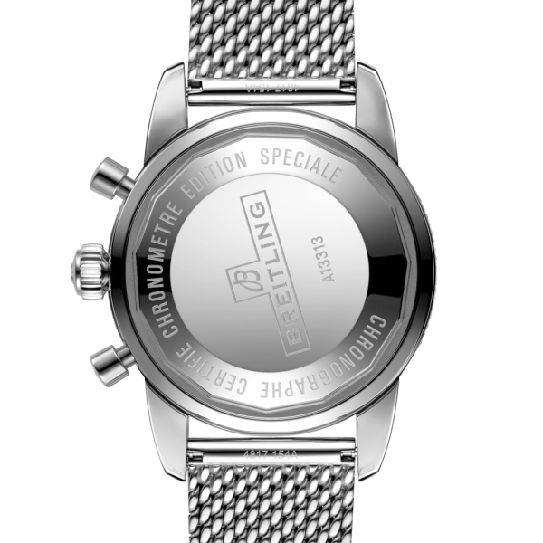 Inspired by the original Superocean from the 1950s, the SuperOcean Heritage combines iconic design features with a modern touch. Sporty and elegant, the Superocean Heritage is a true embodiment of style at sea. Featuring the iconic triangular-shaped hands as well as a unidirectional bezel with a polished ceramic ring, the SuperOcean Heritage is an elegant looking diver’s watch. Available in a variety of materials including stainless steel and 18k red gold, the Superocean Heritage Chronograph 44 features a range of black or blue dials. Offered either with a matching mesh bracelet, or a “mesh-styled” rubber strap fitting a folding buckle, this Superocean Heritage is powered by the Breitling Caliber 13, a COSC-certified chronometer.