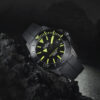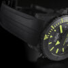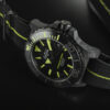 Each timepiece is equipped with an integrated rubber strap with a folding clasp and diving extension. A second, interchangeable NATO flex strap is included in the exclusive wooden box, along with the limited certificate, to add a touch of variety.