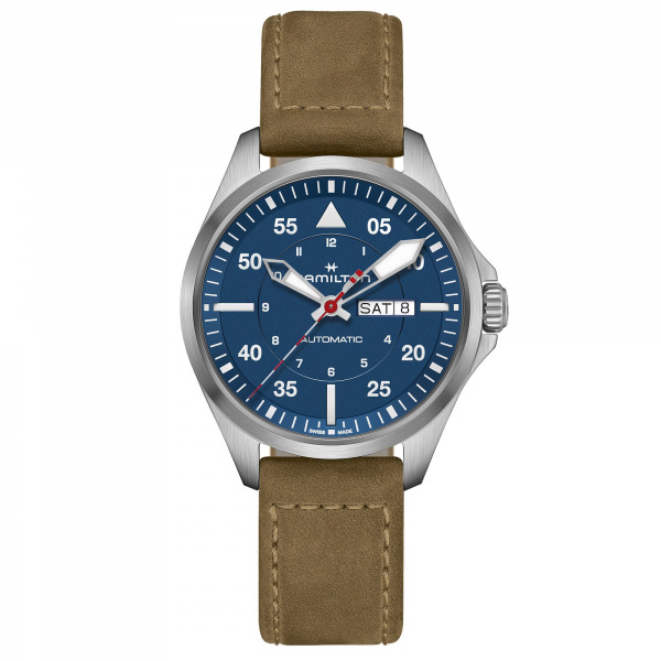 Crafted for true aviation lovers, the Khaki Aviation Pilot Day Date evokes the spirit of exploration and adventure of the Khaki. Powered by the H-30 automatic movement with an 80-hour power reserve and Nivachron™ balance spring, this model features a day-date window and enlarged numbers on the dial for greater legibility.