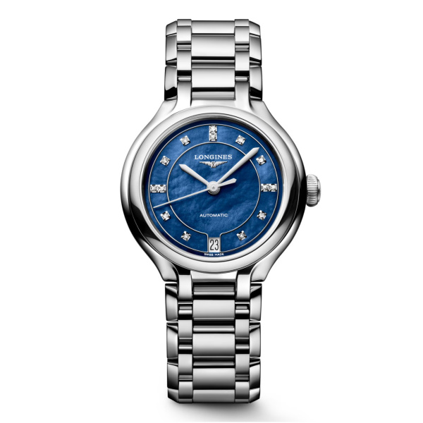 Luminous blue mother-of-pearl dial.