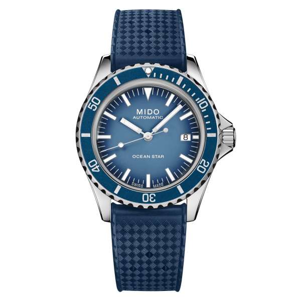 Mido pays tribute to the Ocean Star collection. In subtle reference to the past, the Ocean Star Tribute Swiss watch reinterprets the aesthetic codes of the diving models from the 1960s. It is fitted with the Caliber 80 automatic movement with up to 80 hours of power reserve, is water-resistant up to a pressure of 20 bar (200 m/656 ft) and features a unique strap offering maximum comfort.
