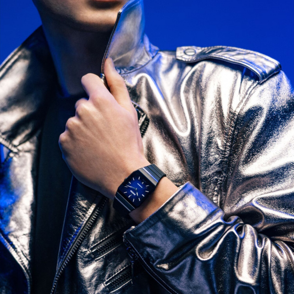 The transparent stainless steel caseback offers a glimpse into the mesmerising inner workings of the watch. The dial exhibits a captivating blue to black gradient, adding depth and allure to the watch’s design. Designed for all-day comfort, the black rubber strap is secured by a brushed stainless steel 3-fold clasp and a black matt high-tech ceramic cover. The watch is water-resistant down to 50 m. Whether you’re exploring new horizons or making a statement at a formal event, this watch is your perfect companion, representing timeless elegance and precision.