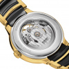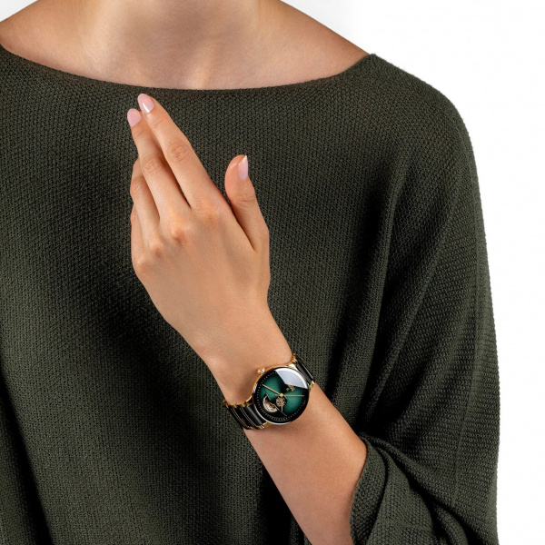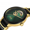Discover the perfect harmony of innovation and aesthetics with the Rado Centrix Automatic Open Heart. At the heart of this masterpiece beats the Automatic Rado calibre R734 movement, producing impeccable precision and reliability. With an impressive 80-hour power reserve, this watch ensures uninterrupted performance. The antimagnetic Nivachron™ hairspring and adjustment in five positions further enhance its accuracy. Encased in a polished yellow gold coloured stainless steel case, measuring a refined 39.5 mm, the Centrix Automatic Open Heart showcases meticulous craftsmanship. The polished stainless steel case back, fitted with a sapphire crystal, offers a glimpse into the mesmerizing inner workings of the watch. The dial exhibits a captivating green to black gradient, adding depth and allure to the watch’s design. Complemented by yellow gold coloured hands, the dial ensures excellent legibility and a touch of elegance. The bracelet features polished yellow gold coloured stainless steel and black high-tech ceramic middle links, creating a striking contrast.