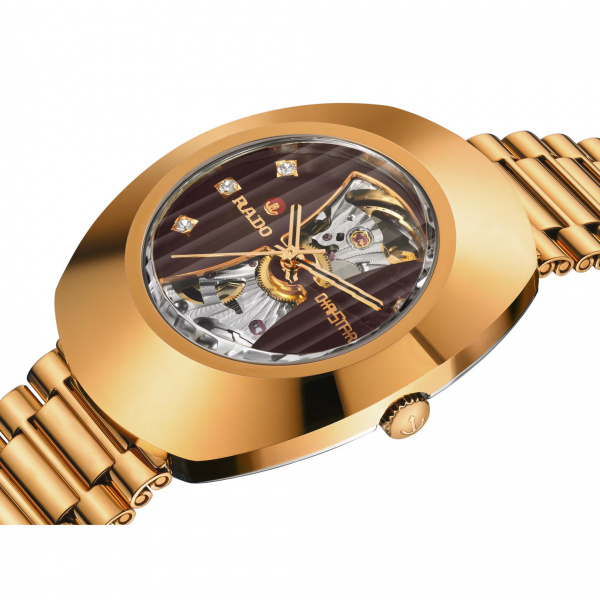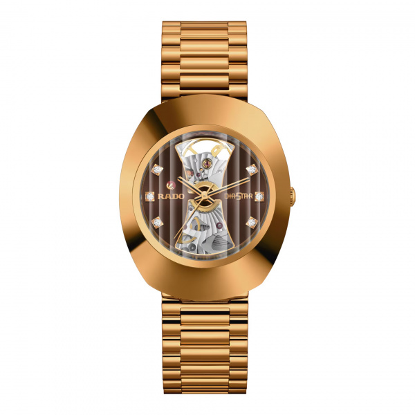 In 1962, Rado revolutionised watchmaking with its scratch-resistant DiaStar. Incorporating the bold and ageless appeal of the first DiaStar, the Original bears the features and functions Rado enthusiasts know and the distinctive look they love. The vertical faceted sapphire crystal shows the brown open heart designed dial with 6 cubic zirconia. The open heart designed dial gives a lighter to the automatic R764 movement with 80 hours of power reserve and sunray guilloche pattern decoration.