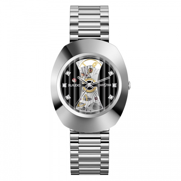 In 1962, Rado revolutionised watchmaking with its scratch-resistant DiaStar. Incorporating the bold and ageless appeal of the first DiaStar, the Original bears the features and functions Rado enthusiasts know and the distinctive look they love. The vertical faceted sapphire crystal shows the black open heart designed dial with 6 cubic zirconia. The open heart designed dial gives a lighter to the automatic R764 movement with 80 hours of power reserve and sunray guilloche pattern decoration.