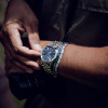 The harmonious arrangement of the day, date, month, and moon phase is perfectly orchestrated on a blue dial, accentuated by white Super-Luminova® coated indexes at their tips, creating a delicate interplay of light and texture. This timepiece features a celestial display inspired by an actual NASA image, adding a poetic dimension while underscoring the complication’s refinement. Every detail reflects the brand’s pursuit of excellence, where mechanical precision and timeless elegance come together as one.