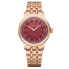 The red dial, located beneath a vintage-inspired sapphire crystal glass-box, has been refined to the highest degree. The hours and minutes are eloquently conveyed with silver-toned hands, lined with Super-LumiNova®.