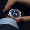 The midnight blue sector dial, located beneath a vintage-inspired sapphire crystal glass-box, has been refined to the highest degree. The hours and minutes are eloquently conveyed with silver-toned hands, lined with Super-LumiNova®. The sector dial presents the hours, minutes and seconds periods on discrete tracks, augmenting readability.