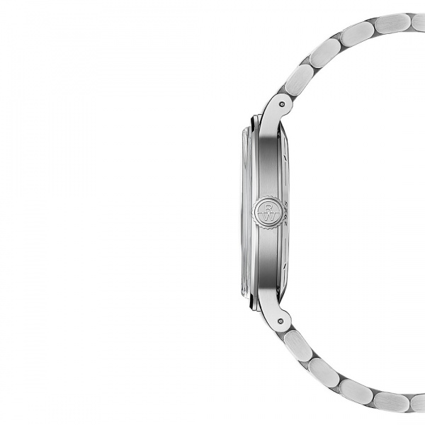 The neo-vintage charm of the millesime timepiece is enhanced with a stainless steel bracelet, refined with a 5-row design. This touch of modern elegance is also available in a corresponding leather strap with a unique W-stitched detail.