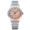 The neo-vintage charm of the millesime timepiece is enhanced with a stainless steel bracelet, refined with a 5-row design. This touch of modern elegance is also available in a corresponding leather strap with a unique W-stitched detail.
