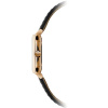 Equipped with a quartz movement, this toccata ladies’ watch features a sleek rectangular stainless steel case with rose gold PVD accents and a black leather strap. The white dial is set with applied Roman numeral indexes. To complement this modern classic, a pair of blue hands has been added.