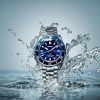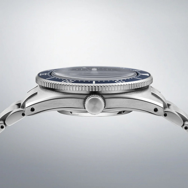 For this latest redux, the design is updated with a more sophisticated specification, heightened water resistance, and improved power reserve. Built in a 40mm stainless steel case, the sapphire crystal glass is surrounded by a deep ‘scuba’ blue bezel and matching dial. In line with professional ISO Diving specification, the hands and indices are coated in glow-in-the-dark Lumibrite whilst its upright date calendar in a 4.5 o’clock position also add to its legibility. For extra comfort and wearability, the bracelet has updated short pitch links and a shorter buckle. It is also slimmer than previous models, with a 13mm depth.