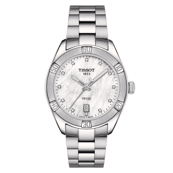 The Tissot PR 100 is a classic watch destined to be worn often and for every occasion. It features the simple and elegant face the collection is loved for, with the pared-back aesthetic symbolizing luxury, quality and classic style. This women’s model features a 316L stainless steel case and an mother of pearl dial.
