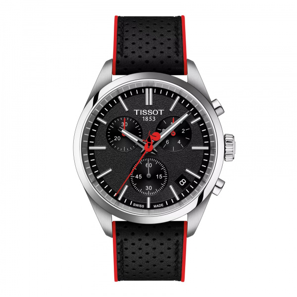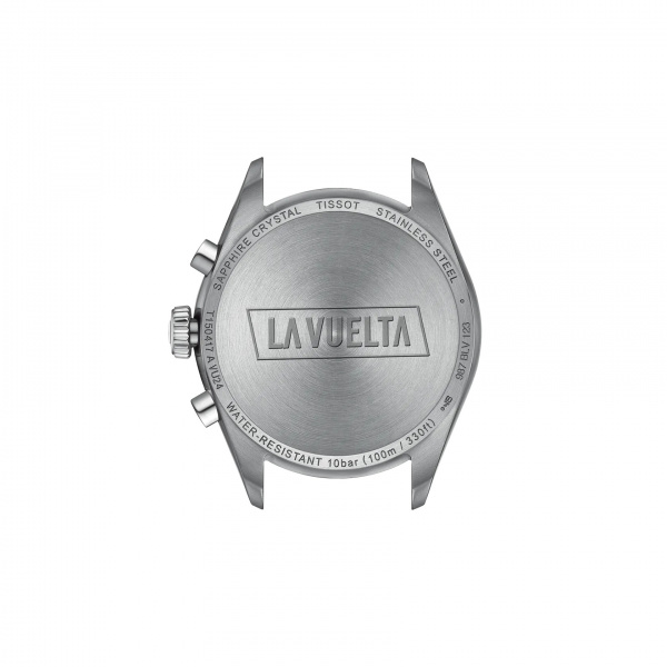 The G10.212 chrono quartz movement within provides precision and robustness, complemented by water resistance up to 10 bar (100 meters/330 feet), and visibility in low-light conditions is guaranteed by the Super-LumiNova® coating on the needle-shaped hands. The caseback of this Grand Tour PR100 model is engraved with the respective logo of La Vuelta.