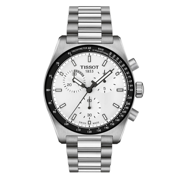 The Tissot PR516 Chronograph Quartz: a contemporary take on a cherished 1970 design. This watch showcases a sleek 40mm stainless-steel case and a dynamic dial, embodying the spirit of speed and precision. Equipped with the Quartz G10.212 movement, it offers unmatched accuracy for the active lifestyle. The bezel features a practical tachymeter, while Super-LumiNova®️-coated indices ensure visibility in all conditions. Its versatile design is complemented by a domed stainless-steel bracelet with a quick interchangeable system, perfect for transitioning from business meetings to casual outings. The PR516 Chronograph Quartz is a modern classic, blending with Tissot’s rich heritage.