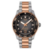 This updated edition of one of Tissot’s main collections now introduces a 40mm casing option with the Powermatic 80 at its heart. For this new release, the casing has undergone a subtle transformation, incorporating a notch along its case edges, resulting in a more compact and sophisticated appearance. These timepieces are perfect for those in search of a sporty yet assertive accessory, offering water resistance up to 1000 feet (300 meters) and improved visibility in dim conditions thanks to the Super-LumiNova® coated hands and hour markers. This release features five distinct models, varying in dial colors and finishes from stainless steel to bi-color combinations, including unique blue to black gradients and exclusive black PVD-coated options. Each variant delivers a unique aesthetic while maintaining the collection’s signature sporty yet bold appeal.