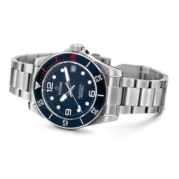 The first Seascoper came out in 1963, at that time still under the name Felca, TITONI’s parent brand. It was one of the first popular wristwatches for divers. The appeal of this legendary 1960s Seascoper lay primarily in its practical design and the outstanding legibility of its dial. The latest model, the Seascoper 600, is a COSC-certified chronometer that marks a historic turning point: fitted with TITONI’s very own T10 manufacture movement, it is guaranteed waterproof to a depth of 600 metres. The watch has been developed specifically for professional divers and sets new standards in this field.