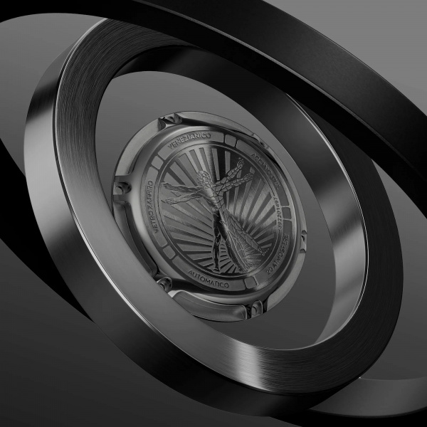 Ultraleggero is the most innovative watch in the Nereide series. It draws inspiration from the Vitruvian Man, symbolizing the Renaissance and the close connection between art and science. The peculiar shape of the skeletonized dial fits perfectly with the body of the movement, through an original patented system that guarantees greater lightness and less bulk.