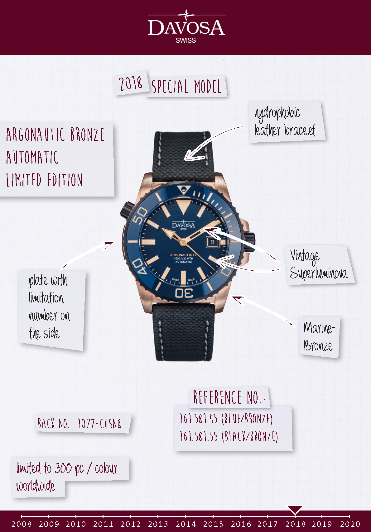 Over the years, the series evolved steadily and was renewed by various collections at irregular intervals. For the 10th anniversary DAVOSA donated the Argonautic-range last year 2018 a very special collection consisting of two limited-edition bronze timepieces, which are very popular due to their wealth of detail and a very attractive price and are now almost sold out.
