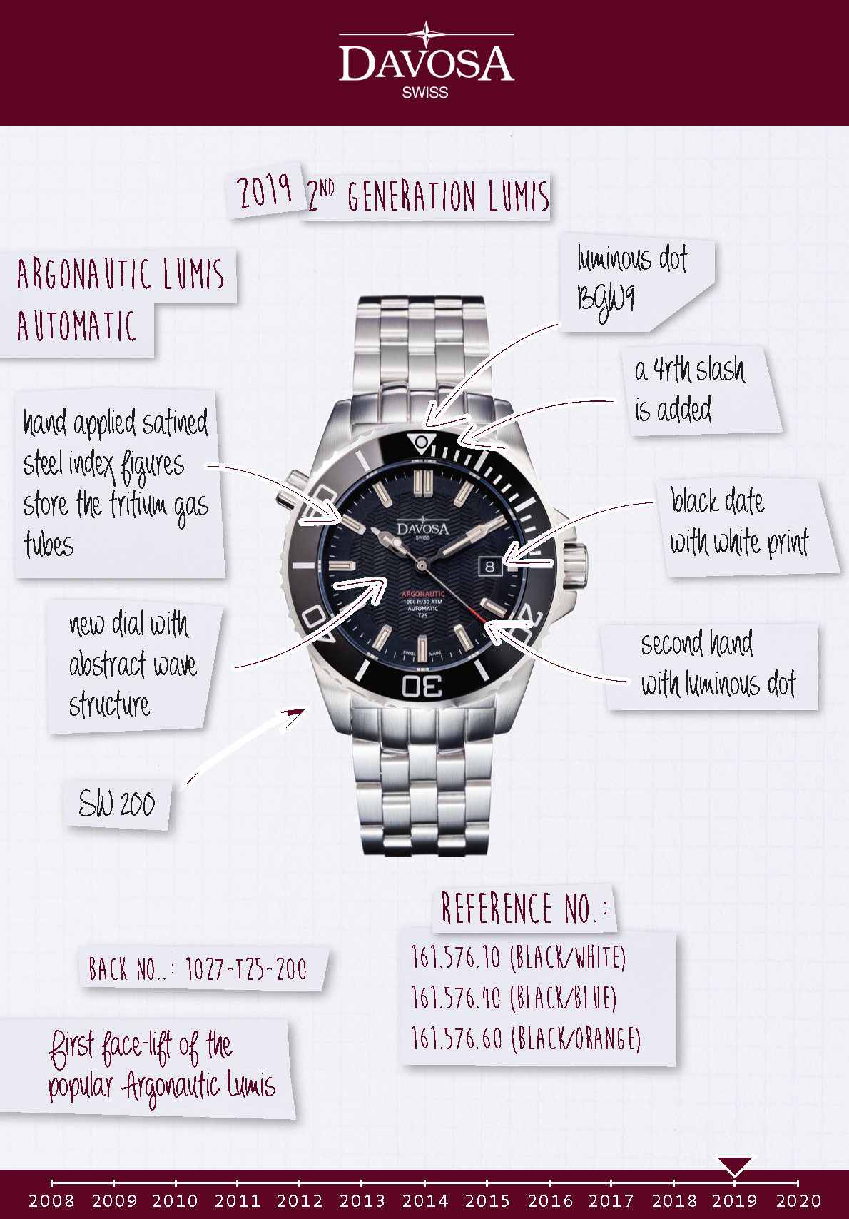 This year we introduced the second generation of the Lumis collection with our Argonautic Lumis T25. In addition to some other highlights, the Lumis variant is characterized by a permanent luminosity without external energy supply. This is due to borosilicate glass tubes filled with a tritium gas mixture. This characteristic feature already marked the first first generation in 2013. At the time, this innovation attracted a lot of attention during the Baselworld watch fair.