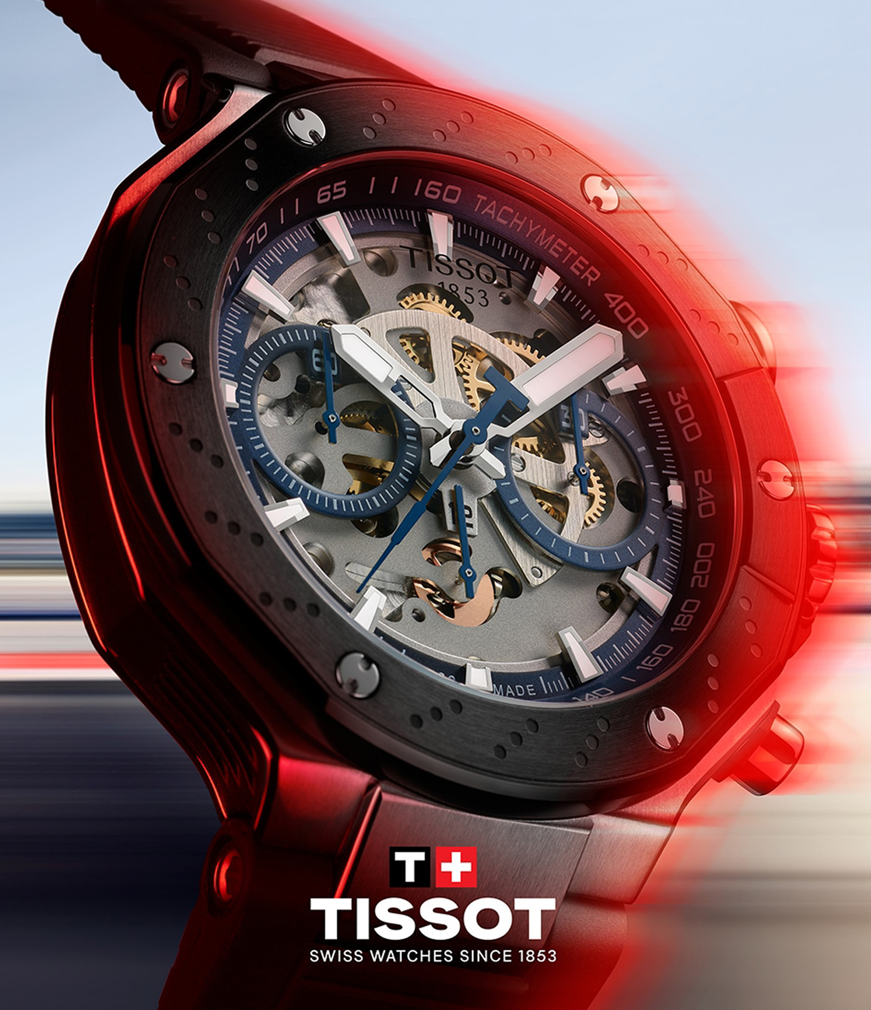 The T-Race collection revs up with new designs, featuring an Automatic model with a Nivachron skeletonised Valjoux A05.951 movement and a Quartz Chronograph, both channelling MotoGP’s DNA with design elements drawn from the sport. Built for those who thrive on adrenaline and relentless drive, it’s designed for those who never stop moving forward.