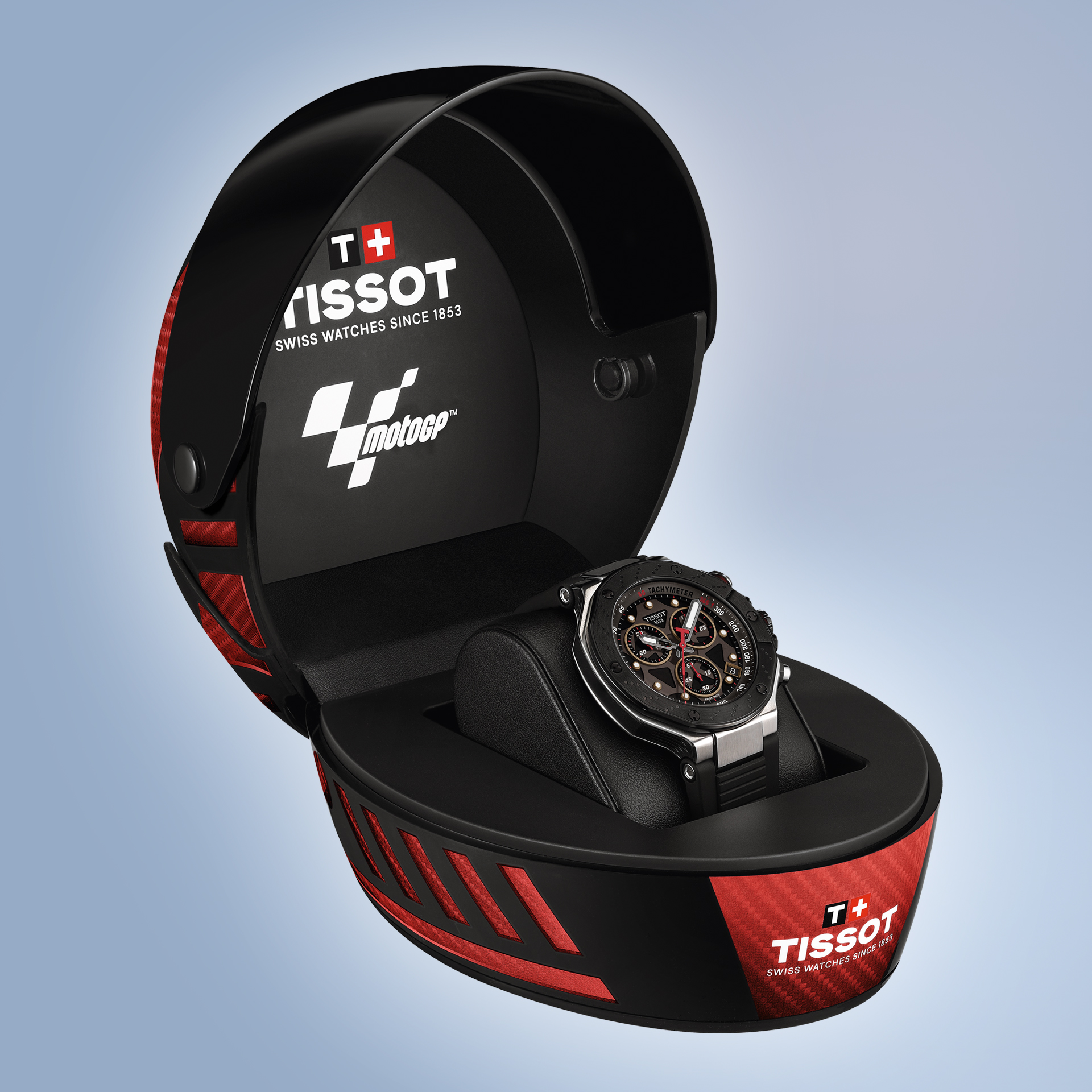 The T-Race MotoGP Quartz Chronograph Limited Edition embodies the spirit of racing with its MotoGP-inspired design, featuring a brake-disc bezel, crankcase screw-style indexes, and a printed tachymeter referencing the 2023 speed record. Powered by a high-precision quartz chronograph movement, this limited edition timepiece (8,000 pieces) comes in a helmet-shaped box, capturing the essence of split-second decisions and perfect timing on the circuit.